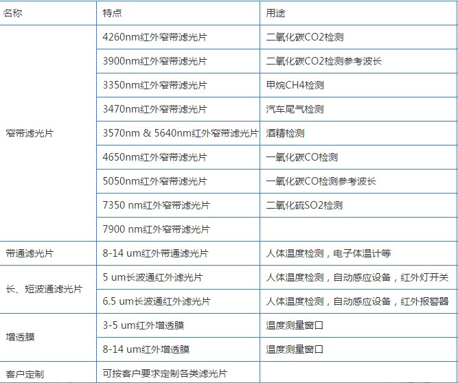 BP365nm 帶通濾光片,415nm帶通濾光片,440nm帶通濾光片,450nm帶通濾光片,490nm帶通濾光片,510nm帶通濾光片,530nm帶通濾光 片,550nm帶通濾光片,555nm帶通濾光片,570nm帶通濾光片,590nm帶通濾光片,610nm帶通濾光片,635nm帶通濾光 片,650nm帶通濾光片,680nm帶通濾光片,780nm帶通濾光片,808nm帶通濾光片,830nm帶通濾光片,850nm帶通濾光 片,940nm帶通濾光片,1000nm帶通濾光片,1064nm帶通濾光片等